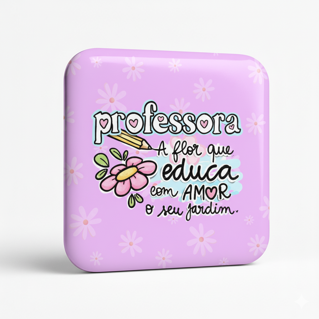 Uma metáfora perfeita para descrever quem cuida do futuro com tanto carinho. Este botton traz a doce mensagem: "Professora, a flor que educa com AMOR o seu jardim". Com um design floral e uma paleta de cores suave, é o presente ideal para aquela professora que cultiva o conhecimento com paciência e afeto.