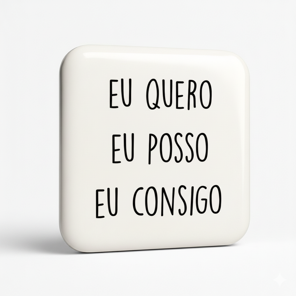 Um lembrete poderoso para começar o dia com o pé direito. Este botton com a frase "Eu Quero, Eu Posso, Eu Consigo" é mais do que um acessório, é o seu mantra diário de determinação. Com um design minimalista e uma tipografia marcante, ele serve como a dose de autoconfiança que você precisa para encarar qualquer desafio.