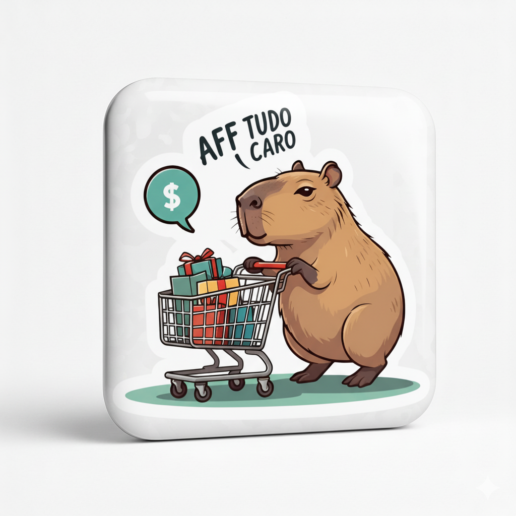 Ninguém representa melhor o brasileiro do que a capivara, e esta aqui está indignada com os preços! Com a frase "Aff, tudo caro", este botton é o desabafo perfeito para os tempos de inflação. Um item engraçado e super atual para quem encara a vida com bom humor.